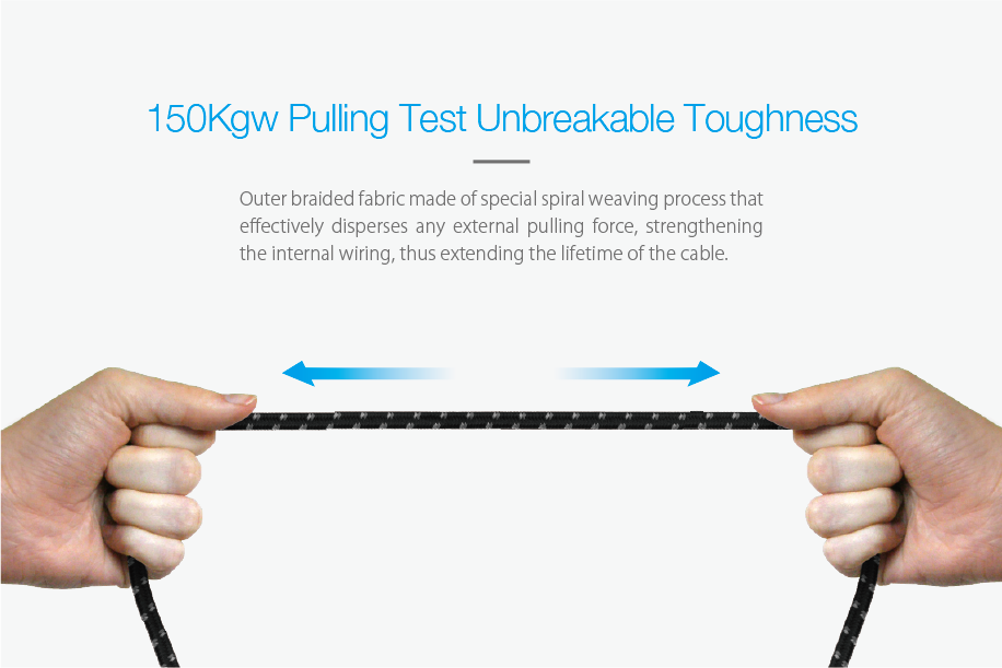 Three layers of defence protect you from the headache of a broken cable: the robust braided outer, the strain-resistant thermoplastic jacket and the high-durability nylon fibre core.